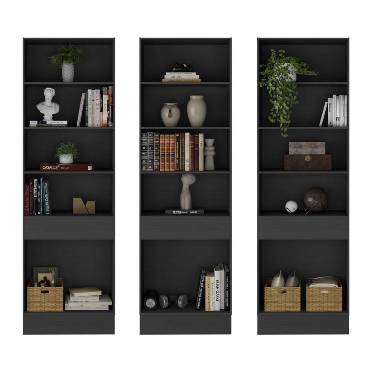 Perfeito para escritórios e ambientes corporativos que precisam de praticidade e boa apresentação, este Armário Estante combina grande capacidade de armazenamento com um visual elegante. Suas prateleiras amplas facilitam a organização de documentos, materiais e objetos decorativos, enquanto os módulos avulsos permitem montar a estante de acordo com o espaço disponível e a necessidade de uso.