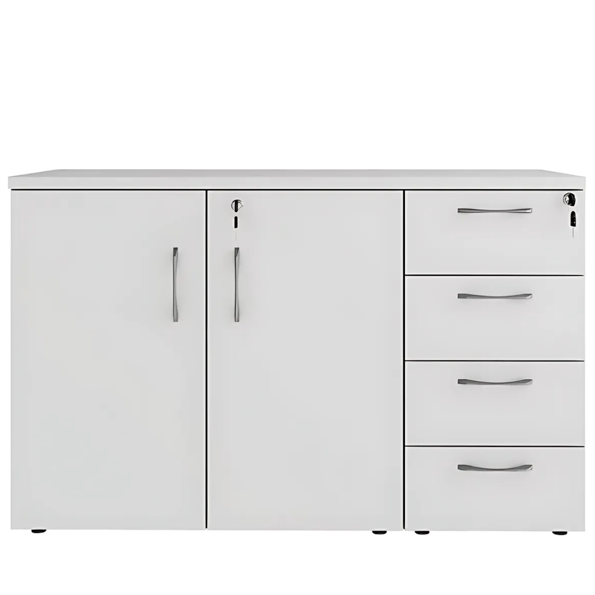 Ideal para ambientes corporativos que exigem praticidade e organização, este balcão oferece amplo espaço para armazenar documentos e materiais de uso diário com total segurança. Sua estrutura resistente garante durabilidade, enquanto o design versátil harmoniza com diferentes estilos de mobiliário, trazendo elegância e eficiência ao espaço de trabalho.