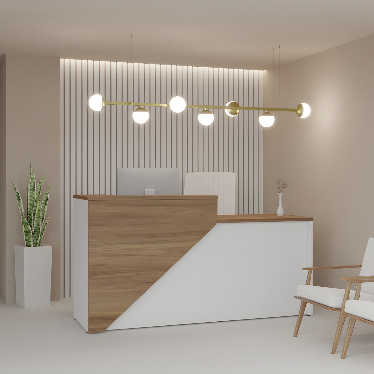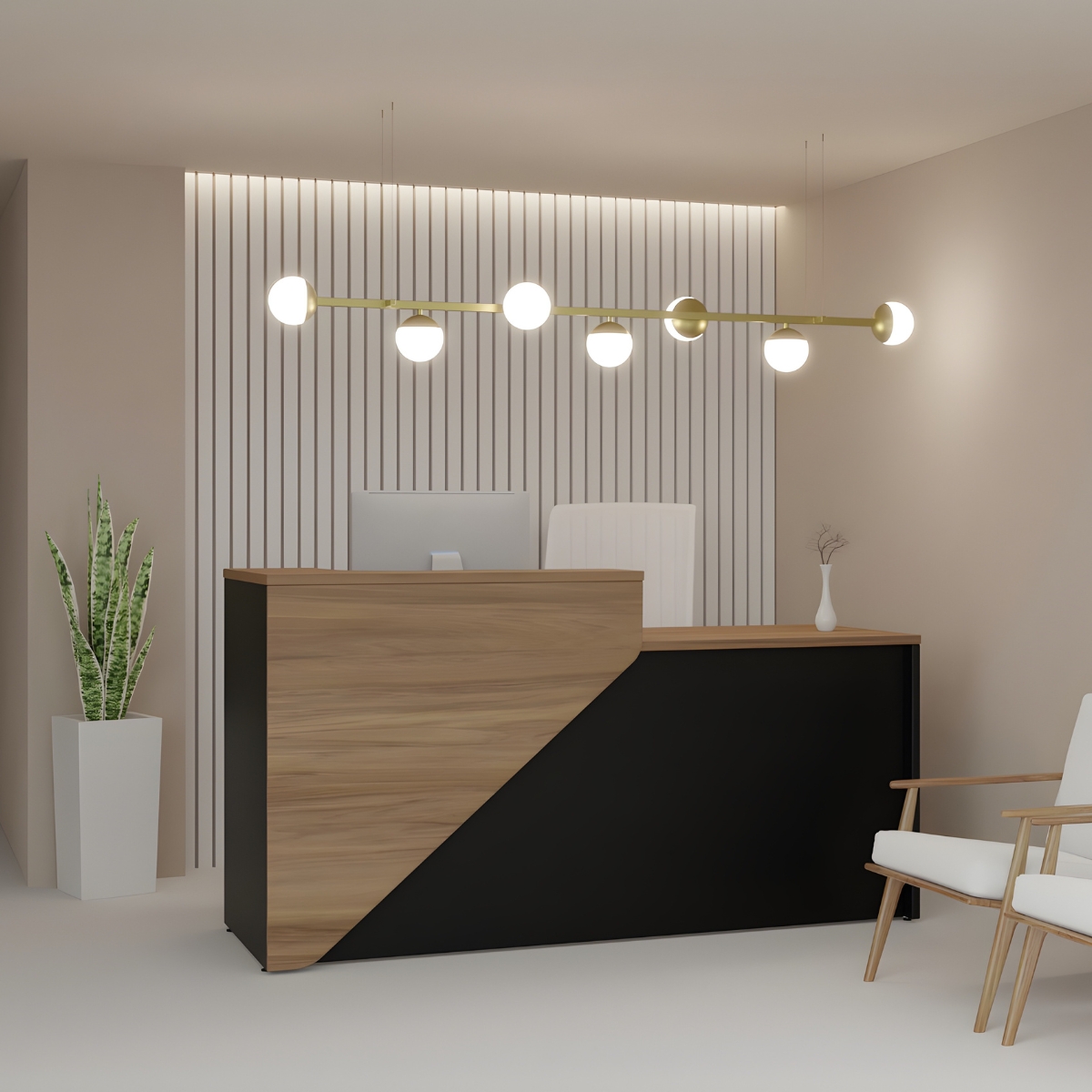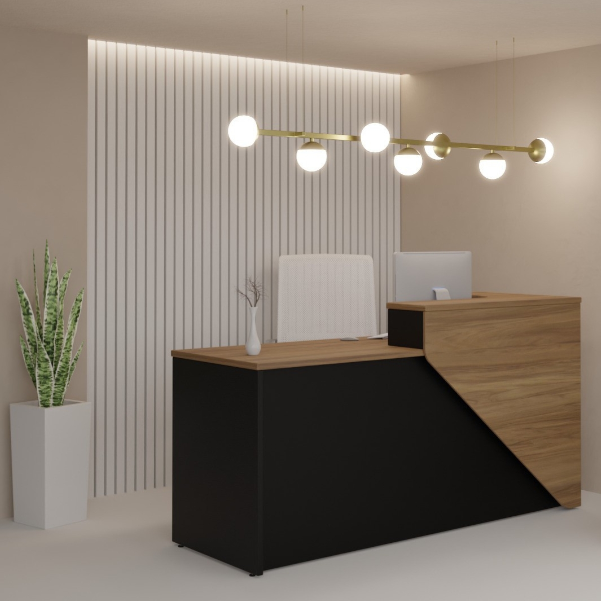 O Balcão de Atendimento Madrid é a escolha ideal para recepções que buscam organização, presença visual e praticidade no atendimento. Seu design contemporâneo cria um ponto de contato elegante e funcional, valorizando o ambiente e facilitando a rotina de trabalho.