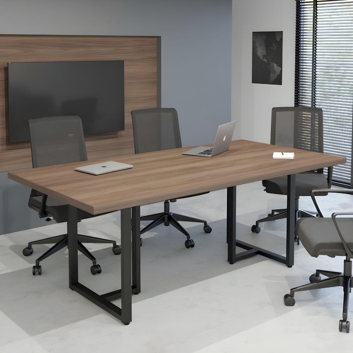 A Mesa de Reunião Industrial foi pensada para criar ambientes corporativos marcantes, unindo presença visual e funcionalidade. Seu estilo industrial valoriza salas de reunião modernas, oferecendo uma base sólida para encontros produtivos, apresentações e tomadas de decisão.