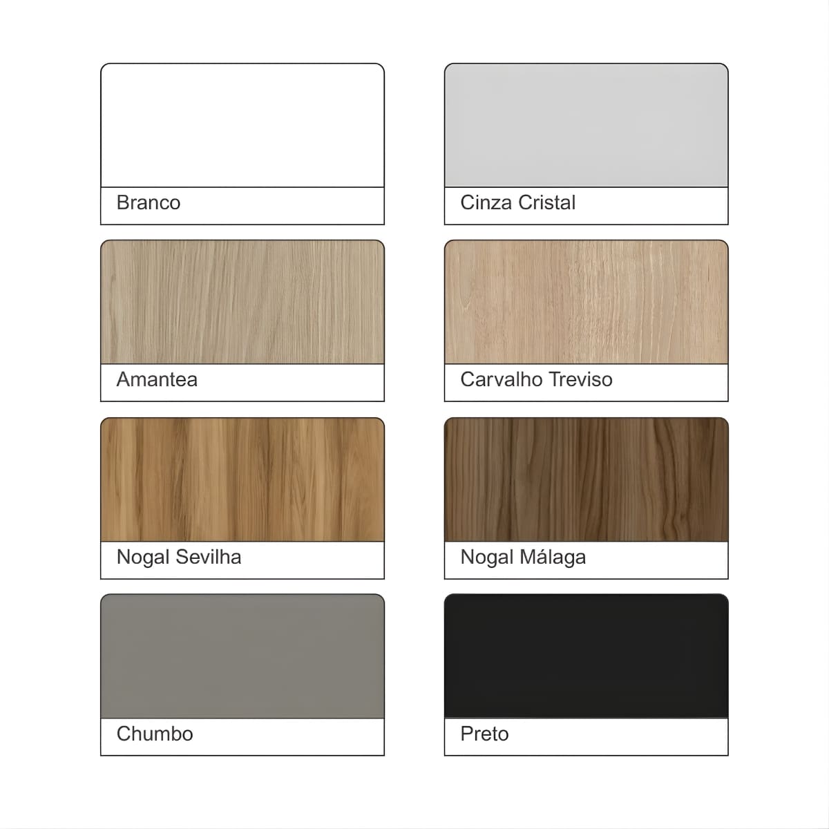 Opções de cor: Branco – Cinza Cristal – Amantea – Carvalho Treviso – Nogal Sevilha – Nogal Málaga – Chumbo – Preto