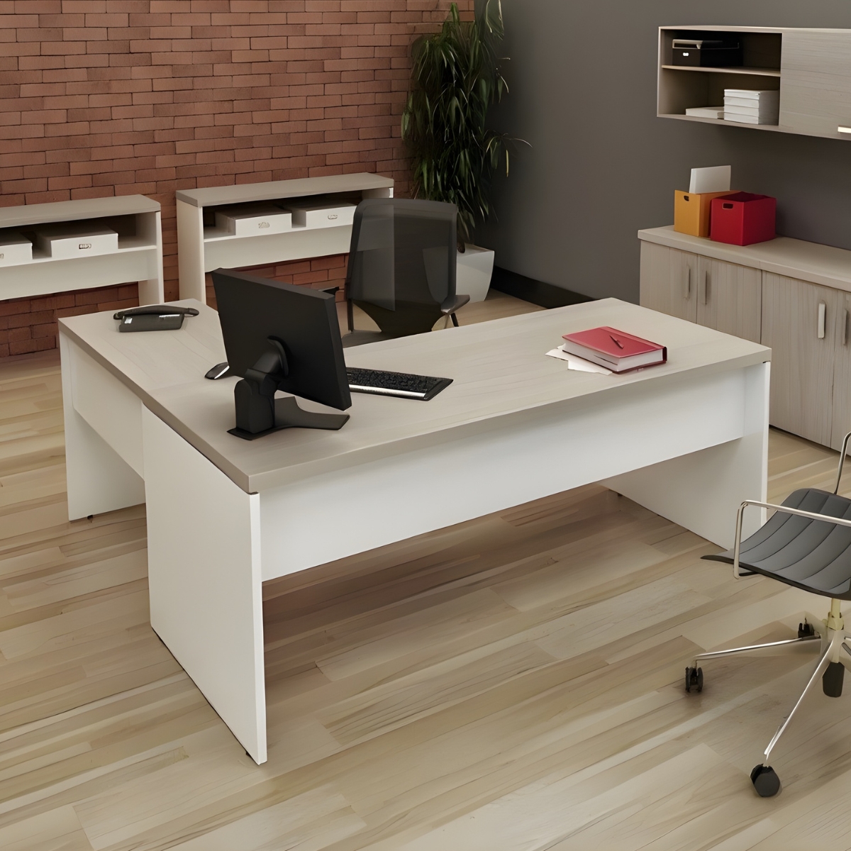 A Mesa em L Tampo 40mm é uma solução prática para quem busca melhor aproveitamento do espaço de trabalho com uma configuração funcional. Robusta e resistente, seu formato em L favorece a organização das atividades diárias, sendo ideal para escritórios, home office e ambientes corporativos que exigem mais área útil e layout bem distribuído.