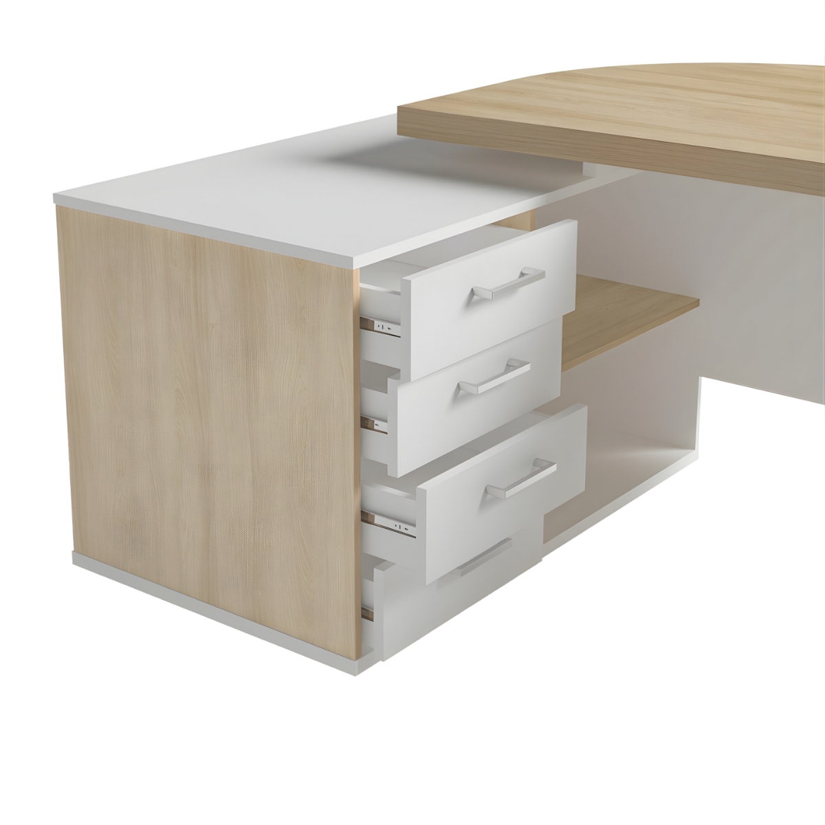 Quatro gavetas com puxador de metal cromado, fundo MDF 6mm e trilho telescópico